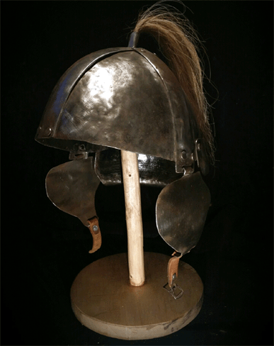 Lámina de fierro de 1 milímetro, aplicaciones de bronce y remaches aluminio. |