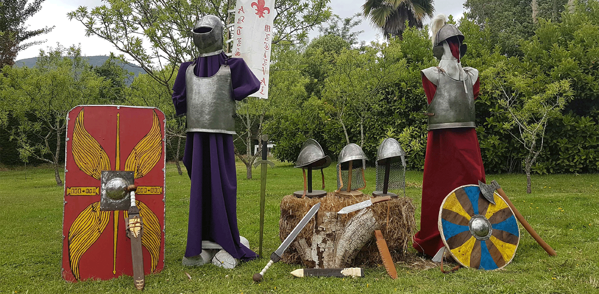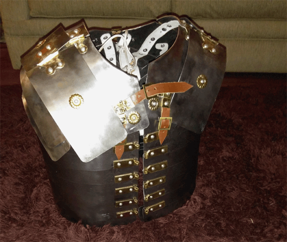 | Peto y espaldar Armadura romana lórica segmentata Tipo corbridge. Lámina fierro de 1 ml., sujeciones y bisagras de bronce. Correas interiores de cuero crudo, exteriores y cordón cuero curtido. |